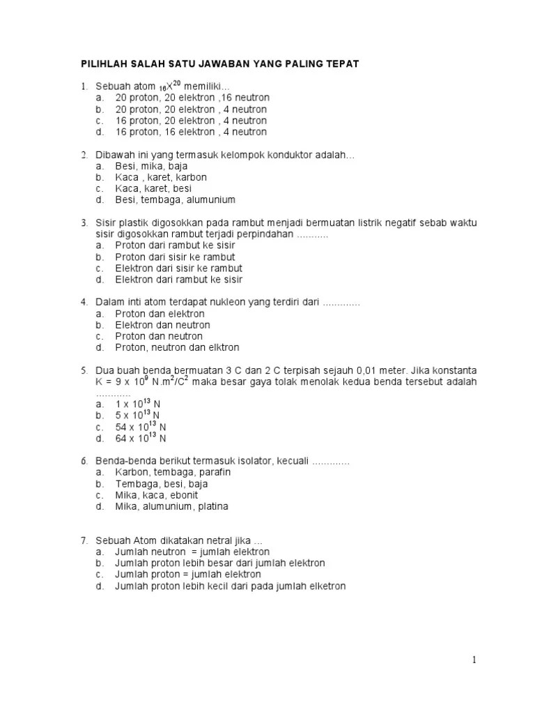 Fisika prediksi soal hots terbaru usbn unbk 2019 12. Di video ini akan dibahas review materi usbn & unbk , dan sbmptn fisika 2019 (listrik dinamis) , semoga membantu ya!untuk video lebih . Listrik statis merupakan salah satu materi fisika yang dipelajari di kelas 12 semester 1, tidak sedikit siswa yang merasa kurang memahami . Materi rumusan butir soal listrik statis (elektrostatika): Berikut ini kami berikan latihan soal untuk materi listrik statis untuk kelas 9.